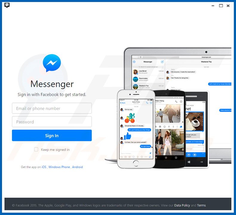 MessengerTime est un programme trompeur qui permet soi-disant aux utilisateurs de lire les messages Facebook directement depuis le bureau. L'apparition de cette application pourrait faire croire aux utilisateurs que MessengerTime est légitime, cependant, cette application est développée par des tiers et n'est pas affiliée à Facebook. En outre, MessengerTime diffuse des publicités en ligne intrusives et suit l'activité de navigation sur Internet. Pour ces raisons, elle est classée comme un programme de type publiciel potentiellement indésirable (PUP).
