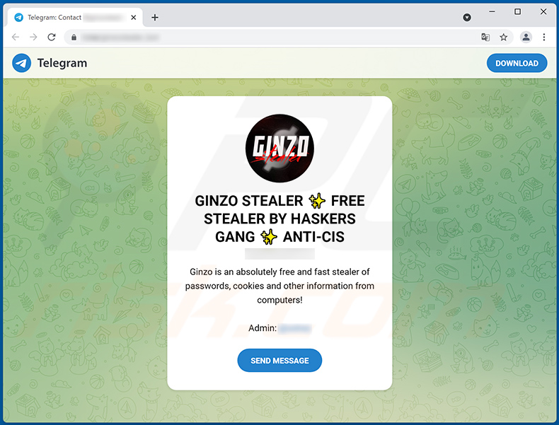 Ginzo est le nom d'un maliciel voleur d'informations qui vole les mots de passe, les cookies et d'autres informations sur des ordinateurs infectés. Nous avons découvert que les cybercriminels utilisent Telegram pour distribuer Ginzo. Ils proposent de le télécharger gratuitement.