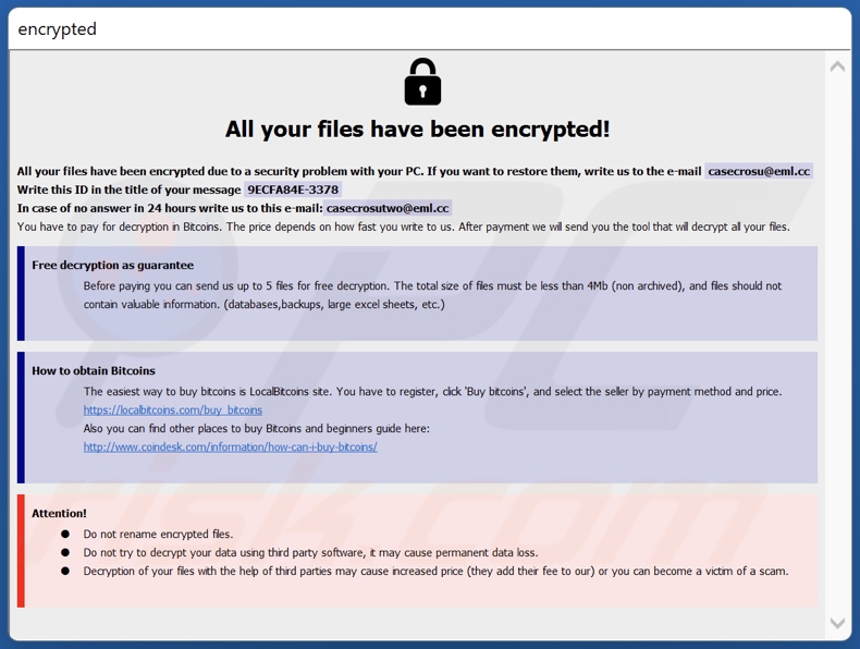 All your files have been encrypted due to a security problem with your PC. If you want to restore them, write us to the e-mail casecrosu@eml.cc