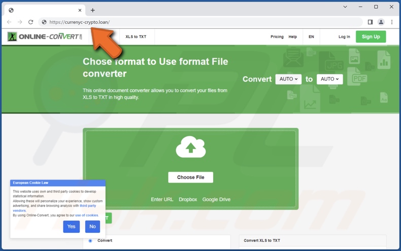 Capture d'écran d'un faux site Web de convertisseur de format de fichier en ligne utilisé pour faire proliférer le voleur ImBetter :