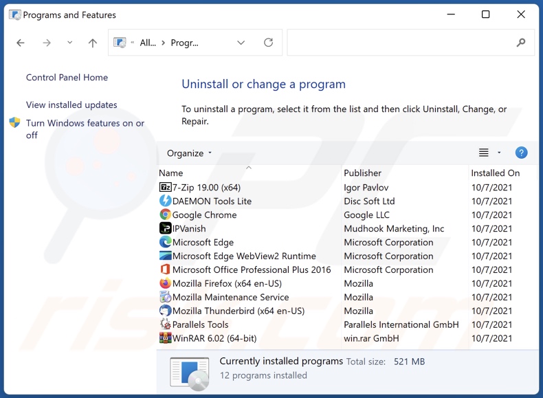 Dans la fenêtre de désinstallation des programmes, recherchez les applications suspectes récemment installées, sélectionnez ces entrées et cliquez sur "Désinstaller" ou "Supprimer".
