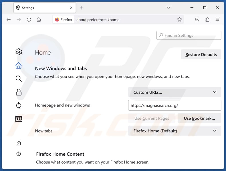 - ETAPE 3. Supprimer la page d'accueil de magnasearch.org et le moteur de recherche par défaut de Mozilla Firefox.