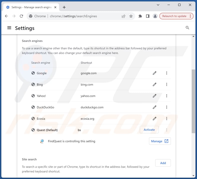 Cependant, lorsqu'elle est activée par des applications non autorisées ou suspectes, cette fonction peut être exploitée pour manipuler les paramètres du navigateur à des fins malveillantes, ce qui peut compromettre la confidentialité et la sécurité de l'utilisateur. FindQuest (et iambest.io) doit donc être supprimé des navigateurs concernés dès que possible.