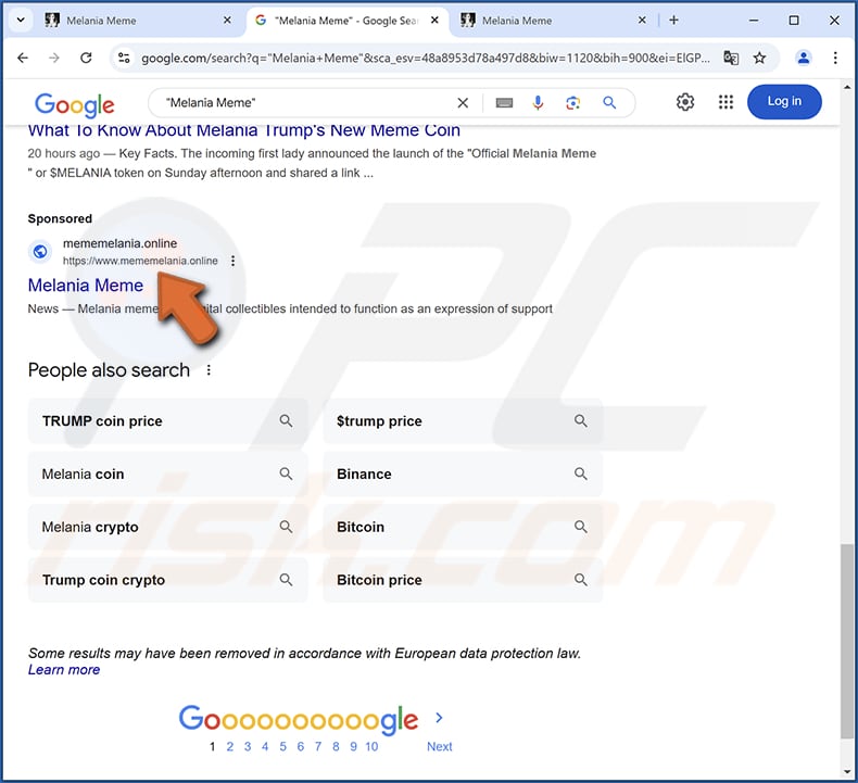 Le faux site web Melania Trump Meme Coin est promu à l'aide de Google Ads. Il apparaît dans la liste des résultats de recherche sponsorisés lorsque les utilisateurs incluent "Melania meme" ou des entrées similaires dans leurs requêtes de recherche. La promotion de ces escroqueries se fait souvent à l'aide de comptes X (Twitter) ou Facebook volés ou falsifiés, ou de sites web WordPress détournés.