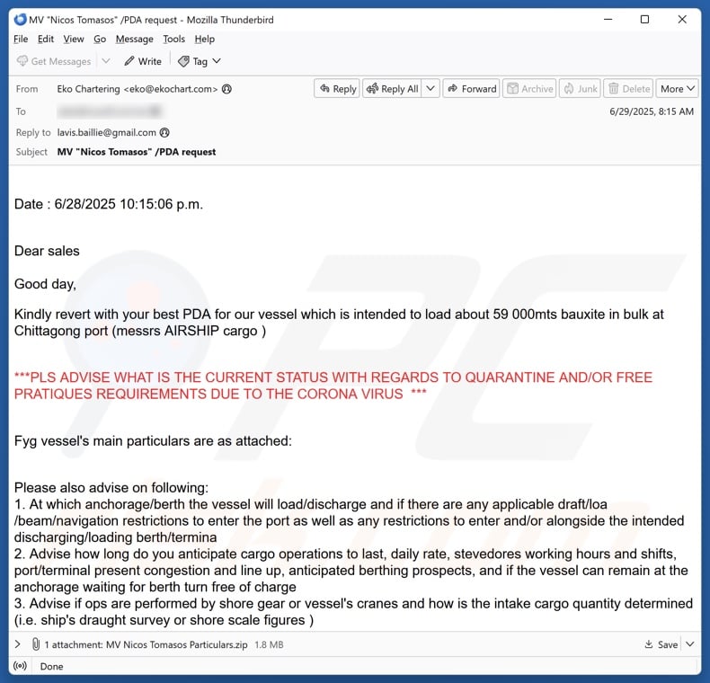 QuirkyLoader a été signalé comme se propageant via des campagnes de spam par e-mail. En général, les logiciels malveillants sont le plus souvent distribués par le biais de courriers indésirables, d'escroqueries en ligne, de téléchargements involontaires, de publicités malveillantes, de canaux de téléchargement douteux (par exemple, les sites de logiciels gratuits et d'hébergement de fichiers gratuits, les réseaux de partage peer-to-peer, etc.), de programmes/médias piratés, d'outils d'activation illégale de logiciels (« cracking ») et de fausses mises à jour. Certains programmes malveillants peuvent même se propager automatiquement via les réseaux locaux et les périphériques de stockage amovibles.