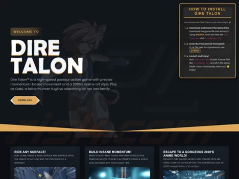 Les pages web s'appuyaient sur l'image de marque et les illustrations de jeux réels, par exemple « WarHeirs » volé à The Braves, « Dire Talon » – Project Feline, « Warstorm Fire » – Crossfire: Sierra Squad, et « Baruda Quest » – Club Cooee. La plupart de ces sites web « officiels » de jeux étaient en portugais, et un nombre important de victimes se trouvaient au Brésil. De nombreuses infections ont également été détectées aux États-Unis et en Turquie. Ces prétendus jeux vidéo étaient promus sur Discord.