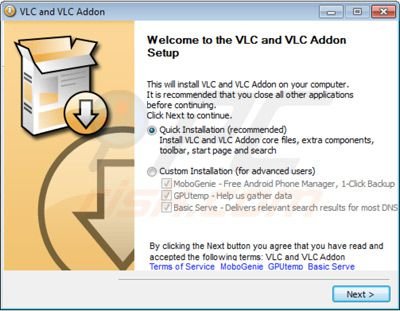 Le virus d’ajout VLC est similaire à d’autres logiciels de publicité qui s’installent sur les navigateurs Internet des utilisateurs en utilisant de faux téléchargements, par exemple Feven, Barre d'outils Mystart et SuperWeb. Pour éviter l’installation de tels plugins illicites de navigateur, les utilisateurs d’Internet doivent télécharger les logiciels gratuits (tel que le lecteur multimédia VLC, Java et les mises à jour du navigateur) depuis les sites web de leur développeur. De plus, lors du téléchargement de programmes gratuits, veillez à inspecter chaque étape et refuser l’installation de plugins publicisés du navigateur en cliquant sur le bouton " décliner ". Lors de l’installation du programme déjà téléchargé, utilisez les options d’installation "avancée" ou "personnalisée", ceci peut révéler l’installation d’extensions combinées du navigateur. Les utilisateurs d’Internet qui voient déjà les annonces "ads not by this site" et "nav-links" lors de la navigation sur Internet doivent vérifier sur la liste des extensions de leur navigateur Internet l’ajout illicite VLC.