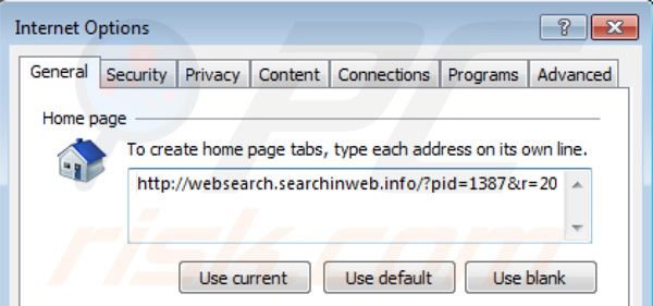 (dans le coin droit en haut dans Internet Explorer) sélectionnez ''Options Internet'', dans la fenêtre ouverte supprimer Websearch.searchinweb.info et entrer votre domaine préféré lequel ouvrira chaque fois que vous lancez 'Internet Explorer, vous pouvez aussi entrez about: blank pour ouvrir une page blanche chque fois que vous démarrez Internet Explorer.