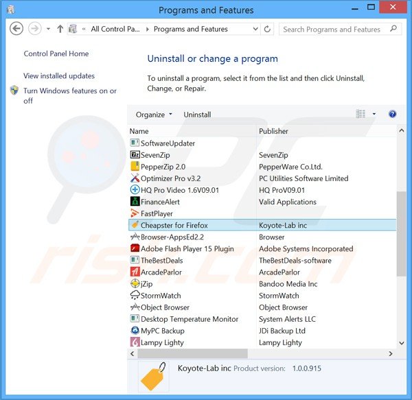- ÉTAPE 1. Désinstallation de l'application Cheapster en utilisant le Panneau de Configuration.
