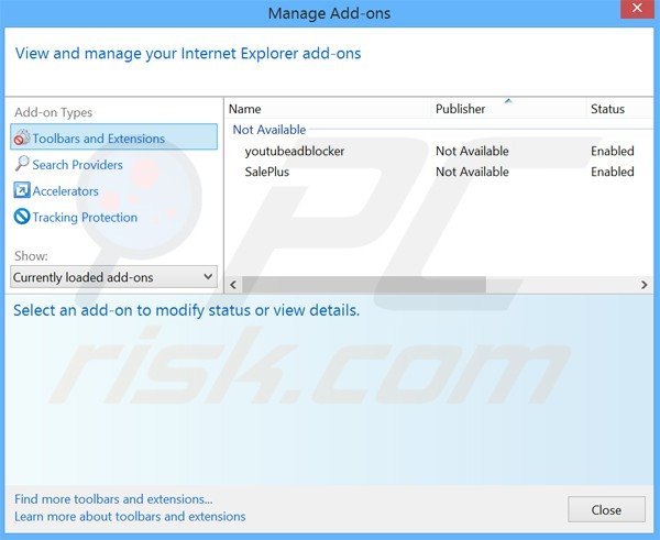 (dans le coin supérieur droit dans Internet Explorer), sélectionnez ''Gestion des Ajouts''. Rechercher toutes extensions de navigateur suspicieuses récemment installées, sélectionnez ces entrée set cliquez ''Supprimer''.
