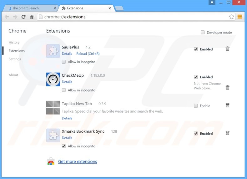 (dans le coin supérieur droit de l'écran), sélectionnez "Outils" et cliquez sur "Extensions". Trouver tous les ajouts de navigateur suspicieux récemment installées, sélectionnez ces entrées et cliquer sur l'icône de la poubelle.