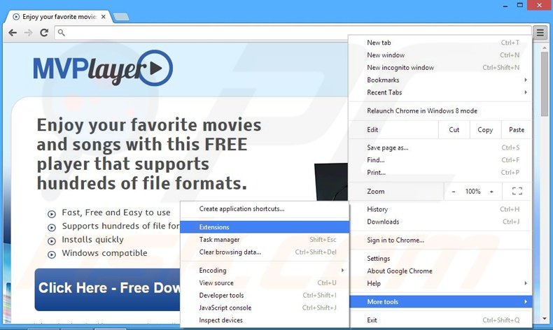 - ÉTAPE 3. Suppression des publicités MVPlayer dans Google Chrome.