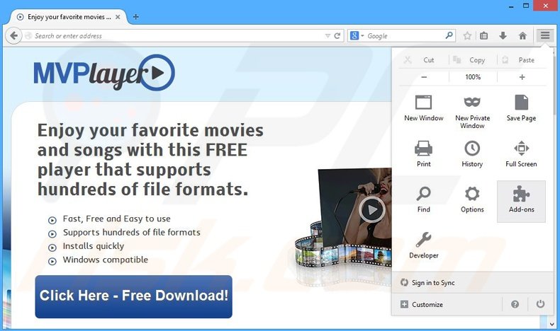 Lors de l’inspection initiale, MVPlayer (développée par Fresh Applications) semble être un lecteur de média approprié qui supporte une grande variété de formats vidéo et audio. La plus part des utilisateurs trouveront cette application légitime et utile, cependant, elle est catégorisée comme un programme potentiellement indésirable (PPI), comme un logiciel de publicité. À cause du fait que MVPlayer est surtout distribué en utilisant une méthode de marketing décevante de logiciel gratuit appelée « empaquetage », les utilisateurs installent souvent sans le vouloir cette fausse application par eux-mêmes. L’empaquetage est une façon secrète d’installer des applications additionnelles en combinaison avec les régulières, et donc, MVPlayer est souvent distribuée en combinaison avec des logiciels gratuits téléchargeables à partir de sites web de téléchargement de logiciels gratuits. Après avoir infiltré les navigateurs Internet (Internet Explorer, Google Chrome, Mozilla Firefox) MVPlayer commence à délivrer des publicités en ligne importunes. Les utilisateurs devraient savoir que les bannières, les pop-up, les pop-under, les publicités interstitielles, et les publicités dans le texte générées par cette application ont le potentiel de rediriger vers des sites web qui ne sont pas digne de confiance, qui peuvent contenir du contenu infectieux, donc causer des infections d’ordinateur à hauts risques.