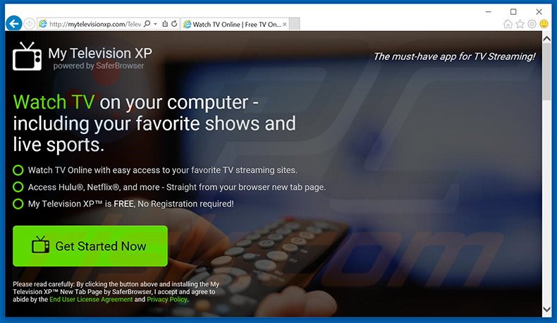 Les applications piratant le navigateur ont des caractéristiques similaires en général. My Television XP partage plusieurs similarités avec newscrawler.com, safesearch.net, taplika.com, et des dizaines d’autres PPI. Noter que tous les pirates de navigateur clament qu’ils améliorent l’expérience de navigation Internet en activant une grande variété de fonctions utiles. Ces fausses promesses sont simplement des tentatives pour tromper les utilisateurs afin qu’ils les installent – leur but est de générer des revenus pour les développeurs. Après avoir infiltré le système, ils collectent simplement des données personnelles, causent des redirections de navigateur indésirables, et affichent des publicités en ligne intrusives.