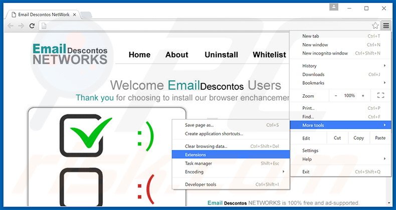 - ÉTAPE 3. Suppression des publicités Email Descontos dans Google Chrome.