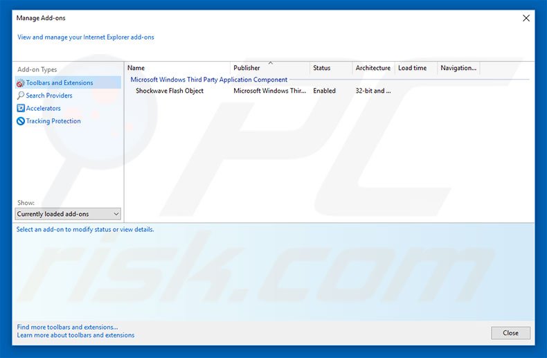 (dans le coin supérieur droit dans Internet Explorer), sélectionnez "Gestion des Ajouts". Rechercher toutes extensions de navigateur suspectes récemment installées, sélectionnez de telles entrées et cliquez ''Supprimer''.