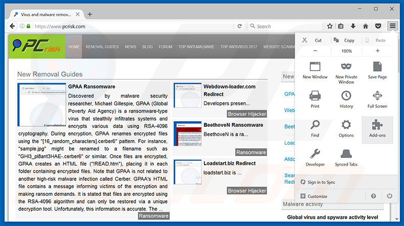 Les utilisateurs d'ordinateur qui ont des problèmes avec la suppression des "suspicious ransomware activity" virus peuvent restaurer leurs paramètres de Mozilla Firefox.