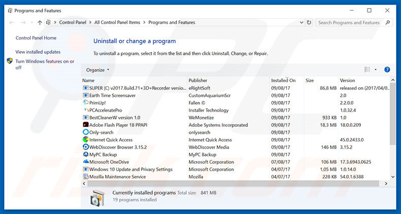 Cliquez droite dans le coin gauche en bas de l'écran, sélectionnez le Panneau de Configuration. Dans la fenêtre ouverte choisissez Désinstallez un Programme.