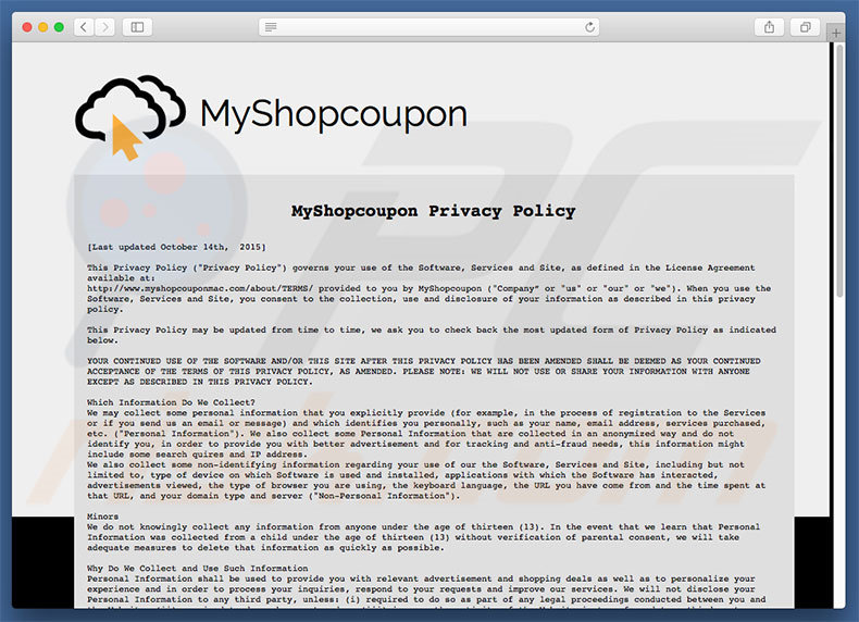 Politique de Vie Privée du logiciel de publicité MyShopcoupon :