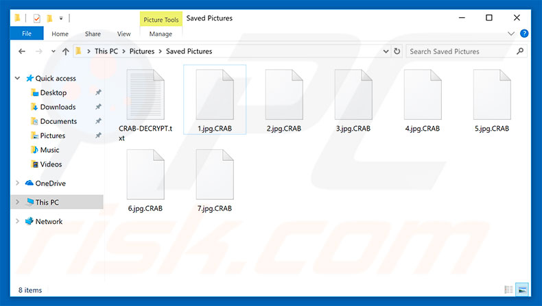 Capture d'écran des fichiers encryptés par GANDCRAB 2 (extension ".CRAB"):