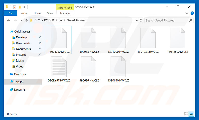 Une autre façon d'identifier une infection rançongiciel consiste à vérifier l'extension de fichier, qui est ajoutée à chaque fichier crypté. Les infections par rançongiciel sont souvent nommées par les extensions qu'elles ajoutent (voir les fichiers cryptés par le rançongiciel Qewe ci-dessous).