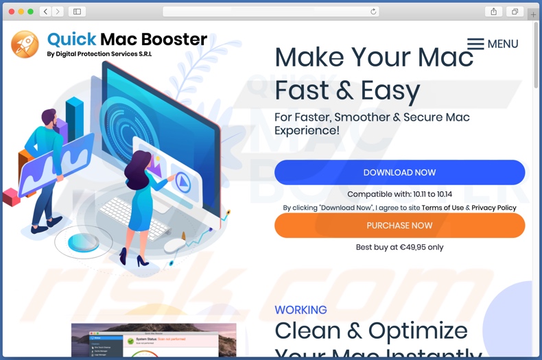 Site web faisant la promotion de l'application Quick Mac Booster :